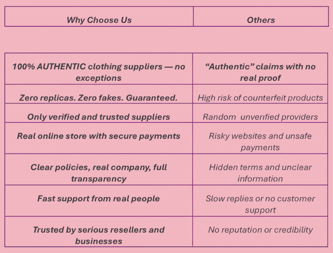 Our service is ideal for resellers, online store owners, and businesses looking for trusted suppliers of authentic clothing.